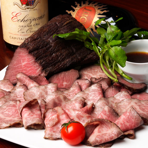 厳選した九州産黒毛和牛をこだわりの製法で焼き上げ、藁焼きの香ばしさを添えてご用意いたしました。最高級のお味をオリジナルのソースと共にお召し上がりください。